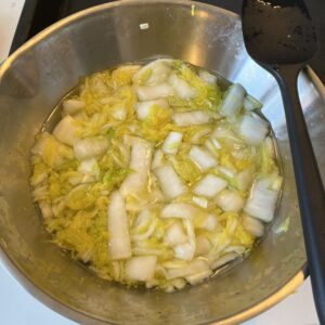 • Cover the cabbage with the salt water making sure all the pieces get a bit of salt.
